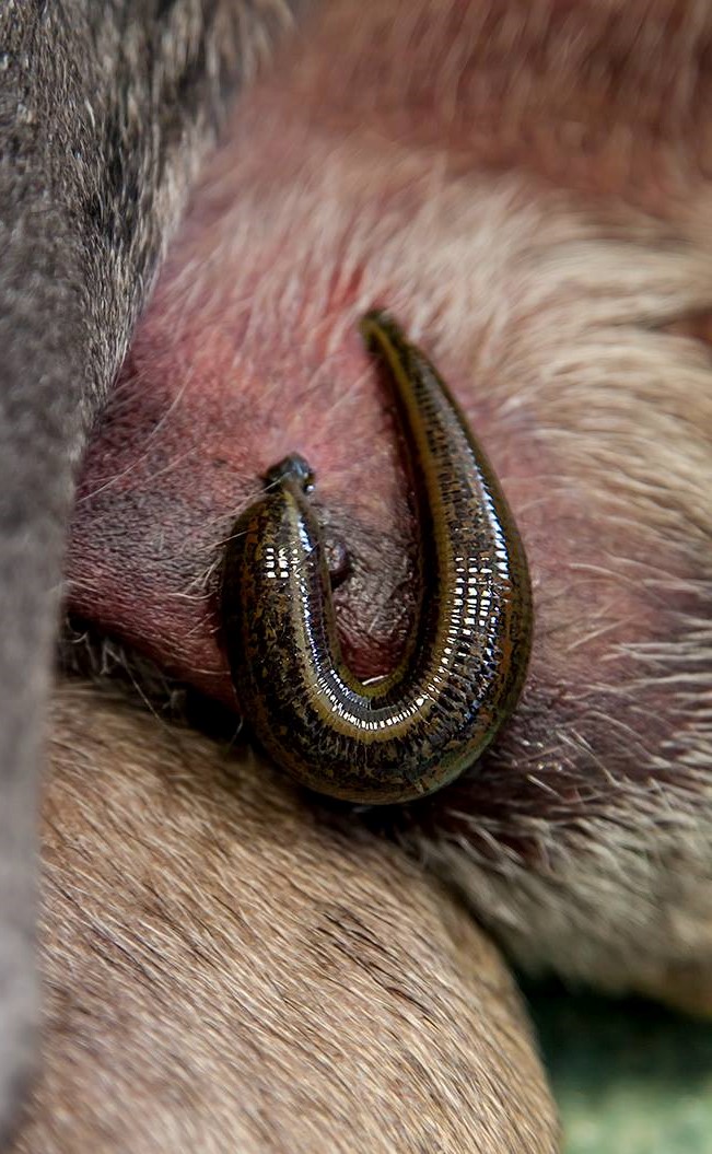 Medizinische Blutegel (Hirudo medicinalis/ officinalis) werden seit Jahrtausenden eingesetzt. Mittlerweile sind Blutegel apothekenpflichtige Medizinprodukte und in der Humanmedizin werden sie teilweise von den Krankenkassen bezahlt. In der Tiermedizin finden sie ebenfalls in einem breiten Spektrum Einsatz. Die Behandlung mit Blutegeln ist entzündungshemmend, antithrombotisch, fördert die Durchblutung und den Lymphabfluss.